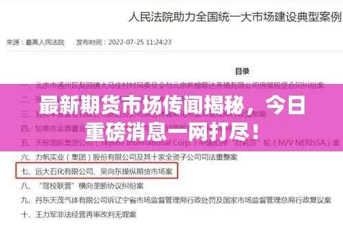 随着全球经济一体化的加速,期货市场成为了投资者关注的焦点之一,期货市场具有高度的敏感性和波动性,因此任何新的传闻和消息都会引起市场的广泛关注,本文将围绕“今日期货传闻最新消息”这一主题,探讨当前期货市场的动态和潜在影响。
